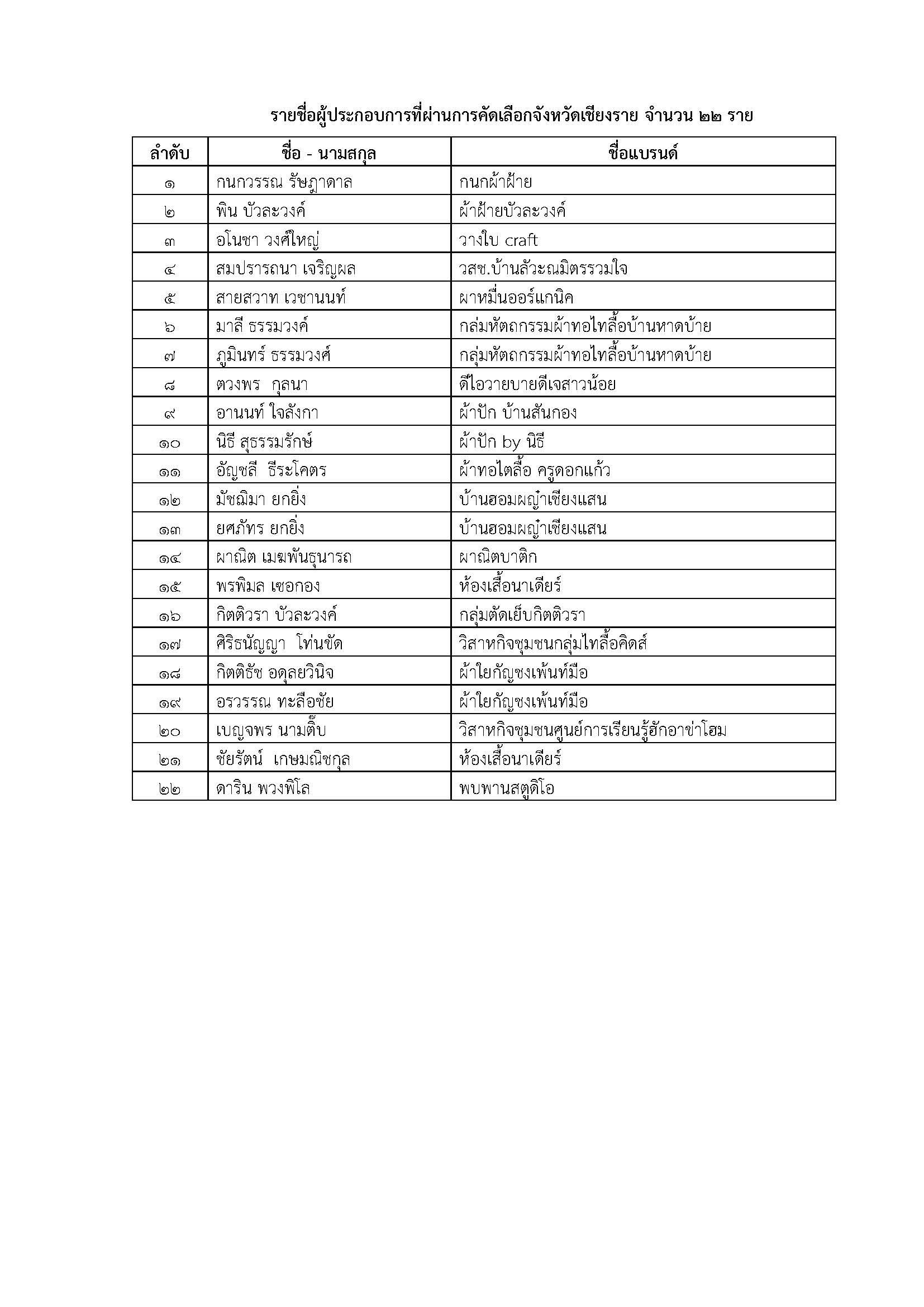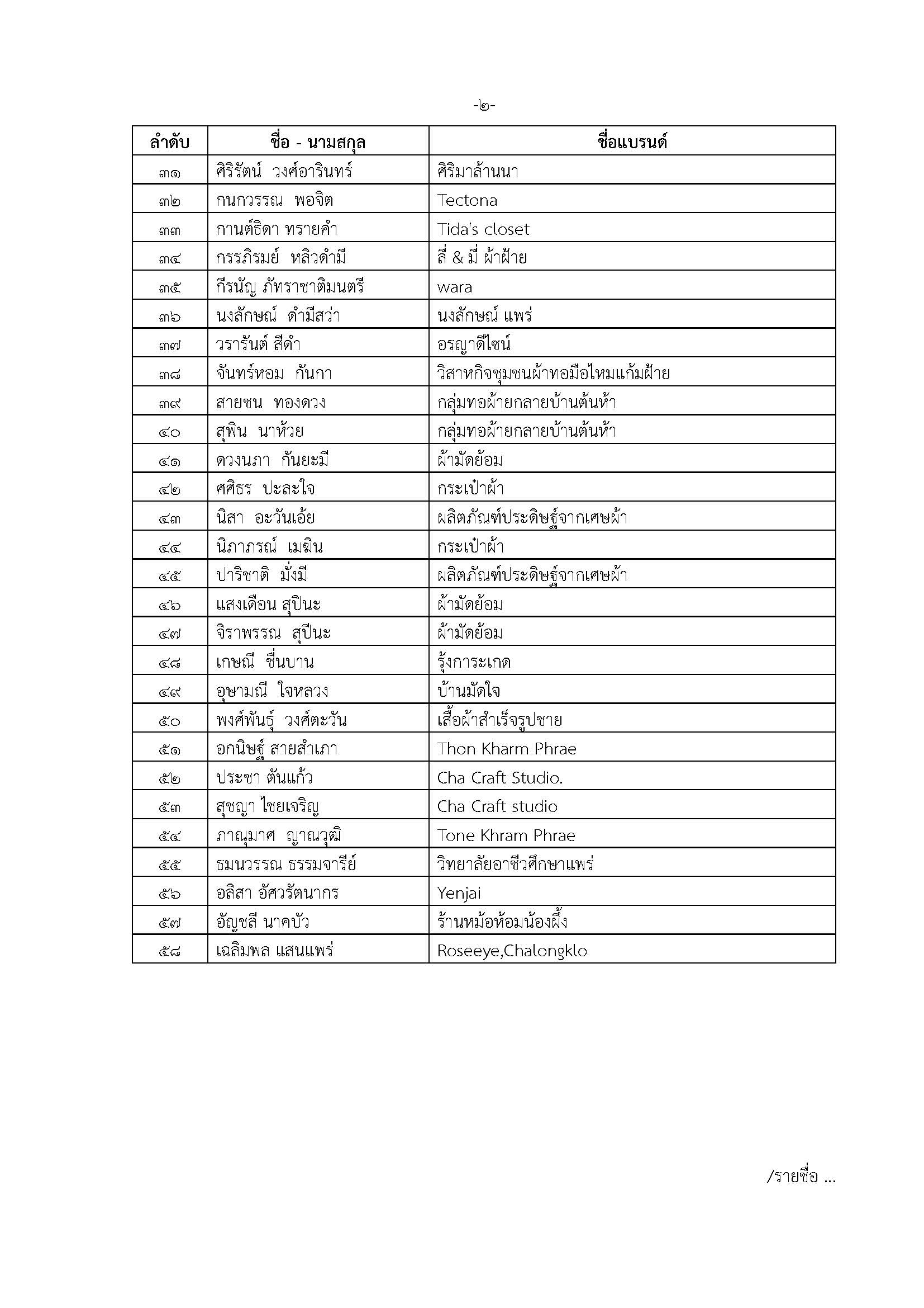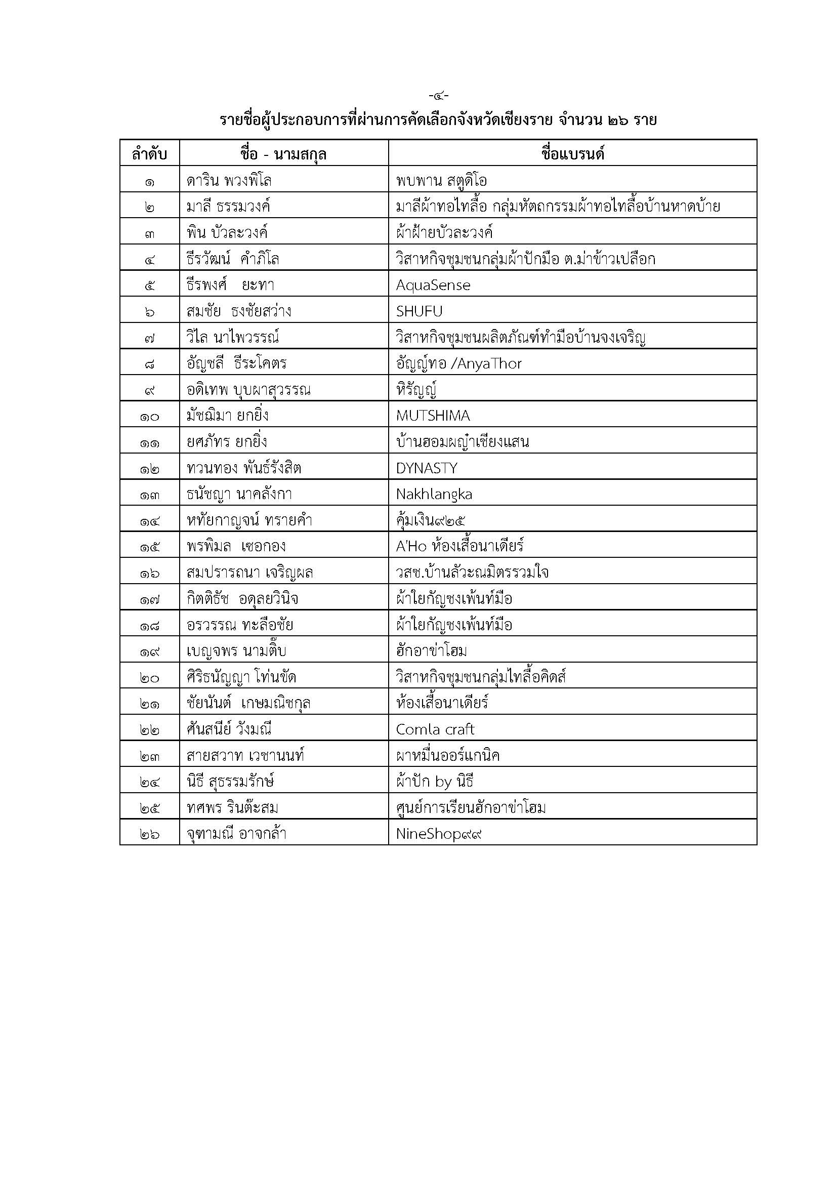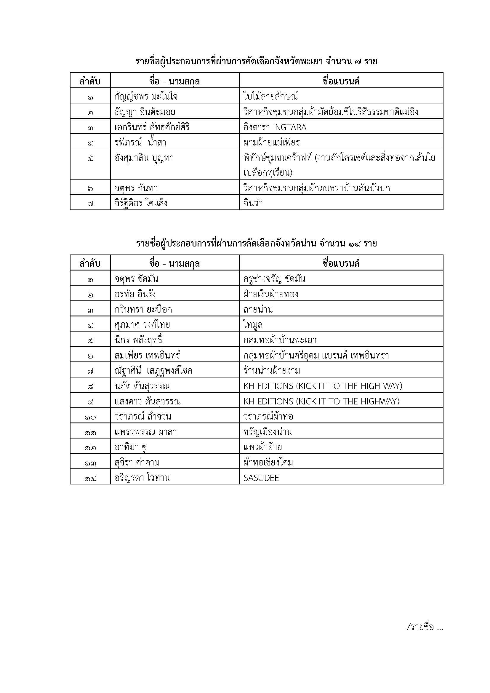 ประกาศจังหวัดแพร่ โดย สำนักงานอุตสาหกรรมจังหวัดแพร่ ได้คัดเลือกกลุ่มเป้าหมายเข้าร่วมกิจกรรมยกระดับการพัฒนาอุตสาหกรรมแฟชั่นล้านนาตะวันออกสู่ตลาดสากล ฯ